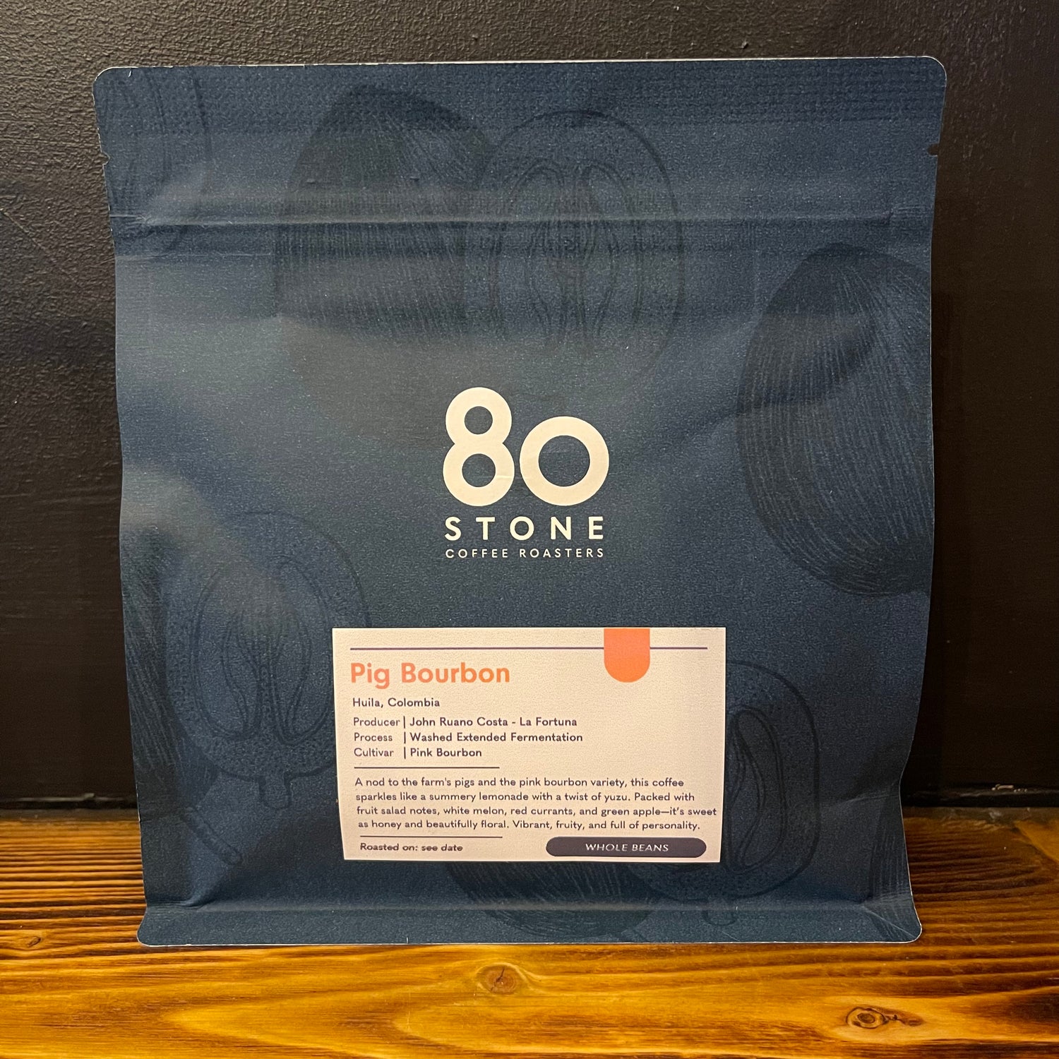Pig Bourbon – Colombia. A nod to the farm’s pigs and the pink bourbon variety, this coffee sparkles like a summery lemonade with a twist of yuzu. Packed with fruit salad notes, white melon, red currants, and green apple—it’s sweet as honey and beautifully floral. Vibrant, fruity, and full of personality.